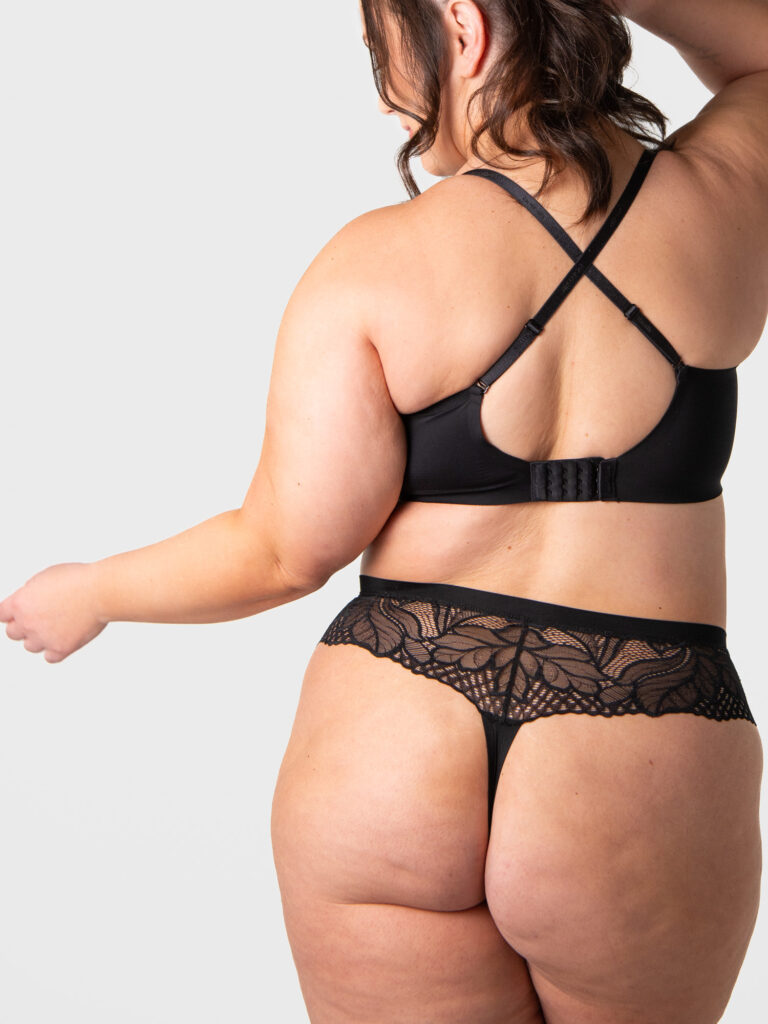 The Refined Flexiwire Bra is available in Cashmere & Black. This style is based of the Hotmilk Temptation Nursing Bra. It is a rounder interpretation.